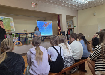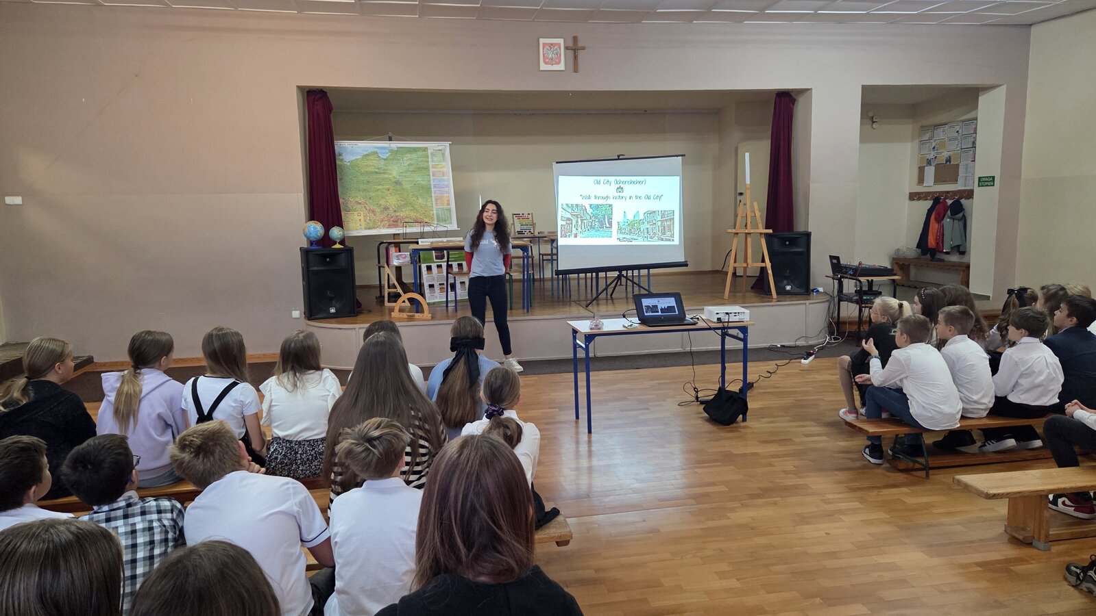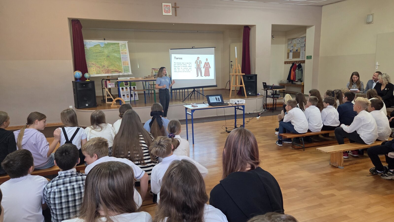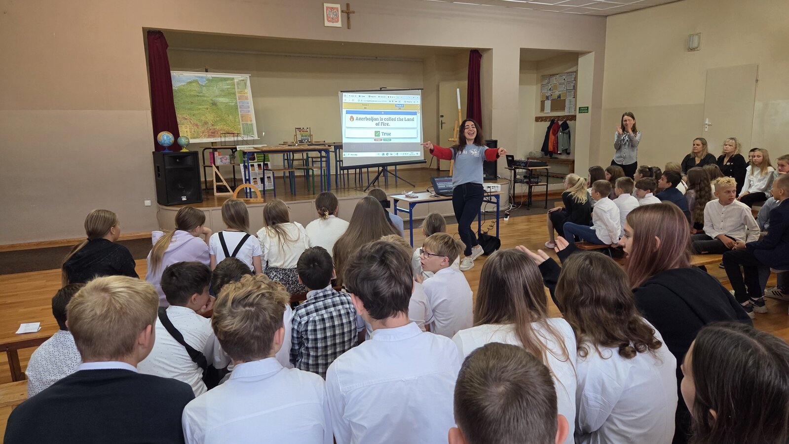 Z tej okazji klasy IV-VIII gościły wyjątkowe wolontariuszki - Sarę z Armenii oraz Yeganę z Azerbejdżanu. Nasze uczennice i uczniowie mieli niecodzienną okazję posłuchać opowieści o kulturze, tradycjach i życiu w tych krajach w języku angielskim. Spotkanie było nie tylko ciekawe, ale również poszerzyło horyzonty i pozwoliło na chwilę przenieść się w odległe zakątki świata.