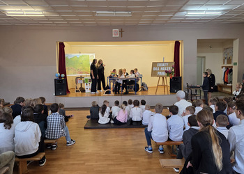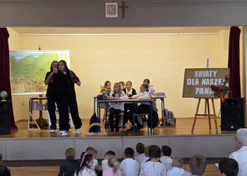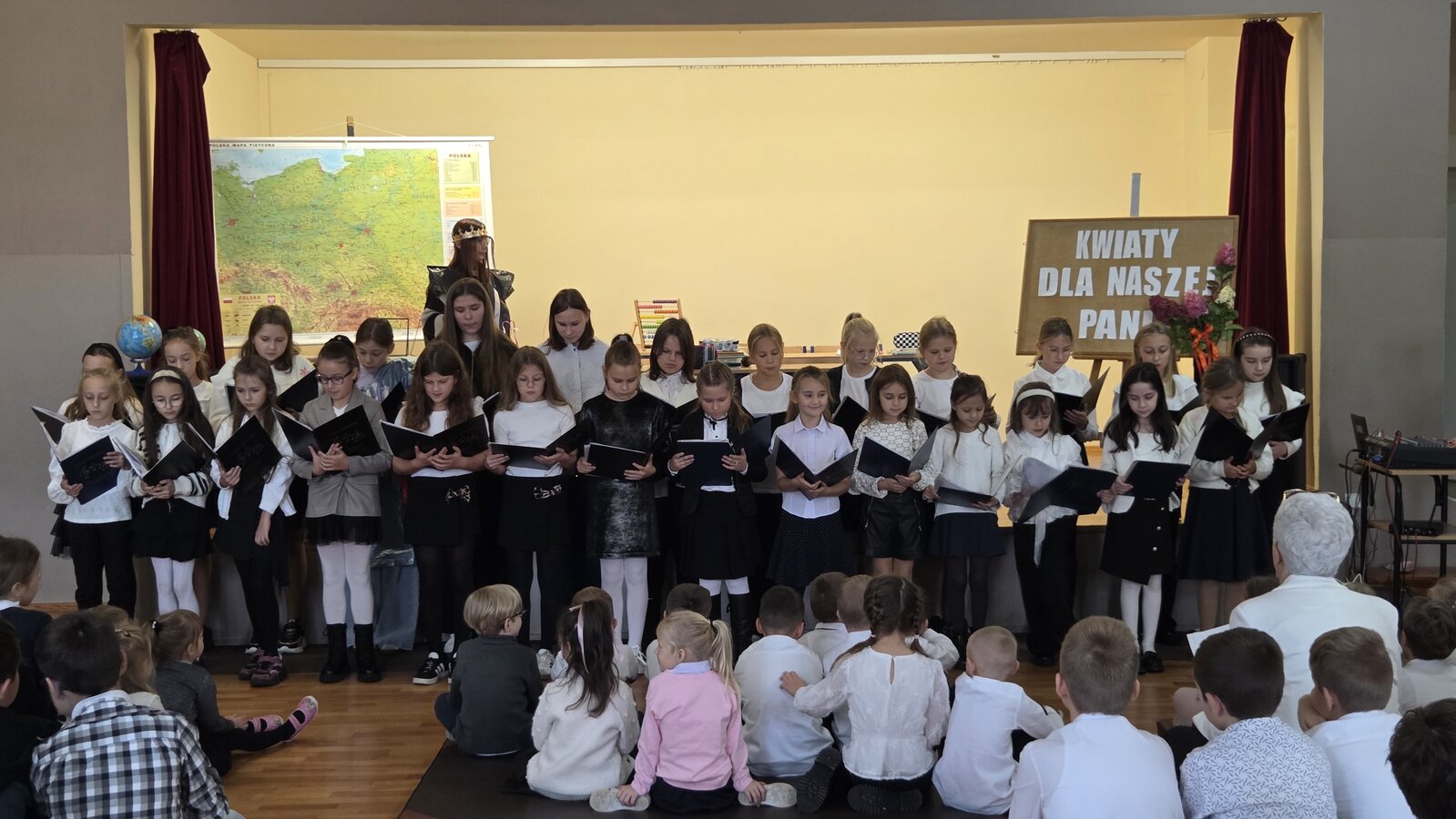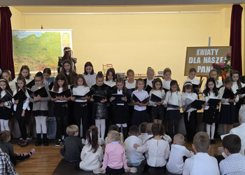 Następnie szkolne kółko teatralne zaprezentowało scenkę pt.„Trafiła kosa na…”, która spotkała się z entuzjastycznym przyjęciem. Uroczystość uświetnił również występ chóru szkolnego.