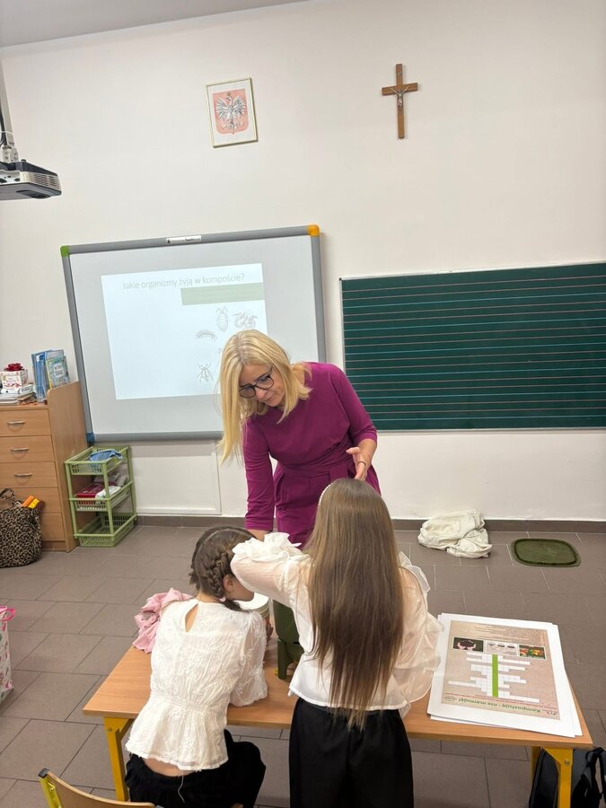 Klasy I-III wzięły udział w warsztatach ,,Kompostuję - nie marnuję”. Podczas spotkania dowiedziały się, dlaczego tak ważne jest kompostowanie odpadów i jaki wpływ ma ono na codzienne życie.