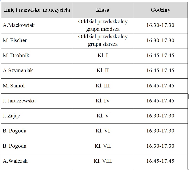 Po części ogólnej zapraszamy na spotkania z wychowawcami klas i oddziałów przedszkolnych – szczegółowy harmonogram znajdą Państwo poniżej.