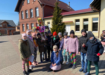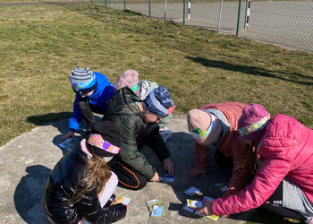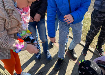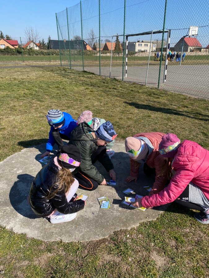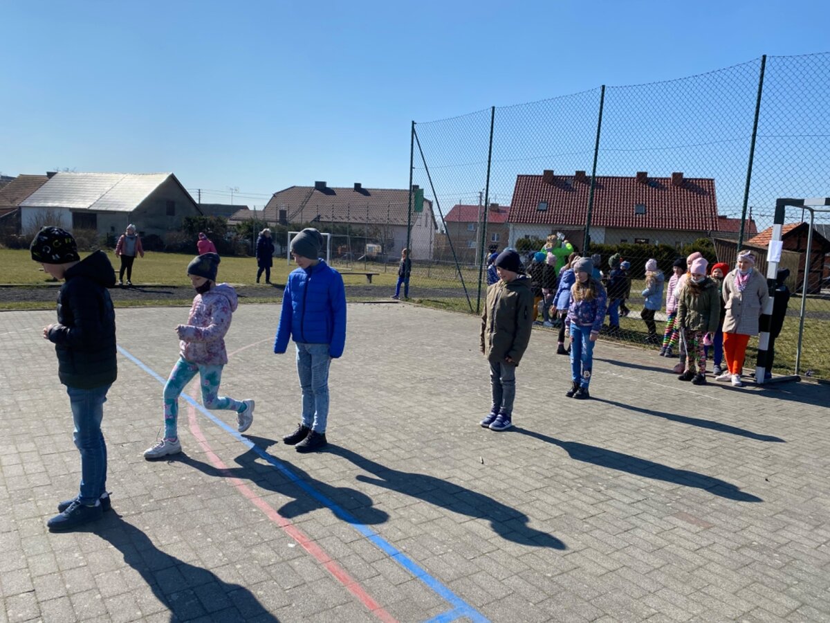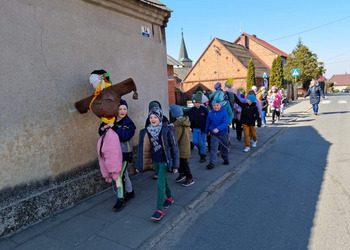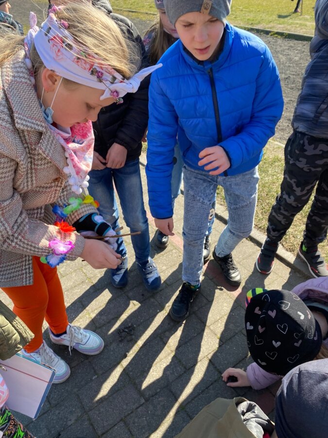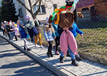 Pierwszy Dzień Wiosny to dla wielu z nas jeden ulubionych dni w roku. To dzień zabawy oraz radosnego powitania wiosny. Podobnie było i w tym roku. Piękna pogoda dopisywała nam od samego rana, a nastroje uczniów mówiły nam o tym, że wiosna nadchodzi. Klasy I-III wzięły tego dnia udział w podchodach, zorganizowanych na terenie naszej szkoły. Do odszukania i rozwiązania mieli 11 zadań z różnych obszarów edukacji. Po ukończeniu każdego zadania, uczniowie otrzymywali literki, które w rezultacie utworzyły hasło "Witaj wiosno". Dzieci musiały między innymi wykazać się sprytem, spostrzegawczością czy celnością. Współpracując ze sobą i świetnie się przy tym bawiąc udało im się rozwiązać wszystkie 11 zadań. Układanie puzzli, rozwiązywanie zagadek czy zadań matematycznych pozytywnie zmęczyło naszych uczniów. Po skończonych zabawach, uczniowie wyszli na ulice Dłużyny, by w kolorowym korowodzie powitać wiosnę. Nie zabrakło także Marzanny, czyli symbolu wiosny. Uczniowie byli bardzo zadowoleni i pełni optymizmu oczekują na kolejne dni przepięknej wiosny.