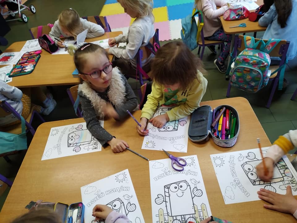 Dzień Książki to kolejne święto, które obchodziliśmy w naszym przedszkolu. Święto to, ma na celu popularyzowanie kontaktu z książką i czytania wśród najmłodszych. Dzieci przyniosły do przedszkola swoje ulubione książeczki i zaprezentowały je swoim rówieśnikom. Przedszkolaki podczas wspólnych działań poznały budowę książki, rozwiązywały zagadki słowne obrazkowe utrwalające znajomość bajek i postaci w nich występujących, układały puzzle, uczestniczyły w zabawach muzyczno- ruchowych. Nasi podopieczni nie zapomnieli , również o pracach plastycznych nawiązujących do Dnia książki. Najmłodsze dzieci wykonały samodzielnie kolorowe zakładki do książki. Podsumowaniem obchodów Dnia książki była wizyta w szkolnej bibliotece i wysłuchanie pogadanki nauczyciela – bibliotekarza na temat: ,,Prośby książki” oraz właściwego obchodzenia się z książką.