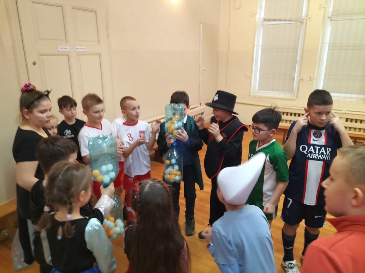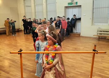 Klasy 1-3 ostatni dzień karnawału spędziły na balu. Uczniowie w tym dniu mogli zamienić się w kogo tylko chcieli. Najwięcej zawitało do nas piłkarzy ale byli także piraci i piratki, wróżki, policjantka, czerwony Kapturek i wiele innych wspaniałych postaci. Dzieci mogły potańczyć w rytm skocznej muzyki oraz wziąć udział w wielu ciekawych zabawach takich jak: podawanie piłki czy limbo. Było bardzo kolorowo i wesoło