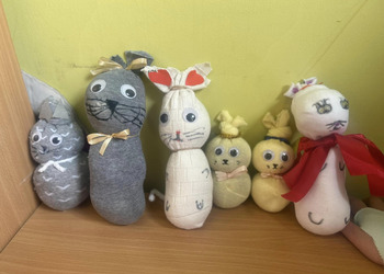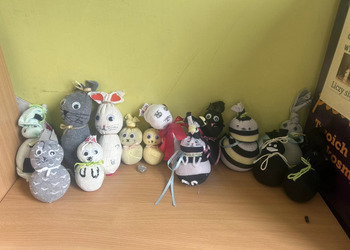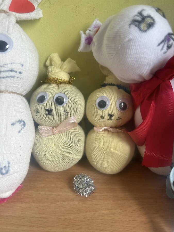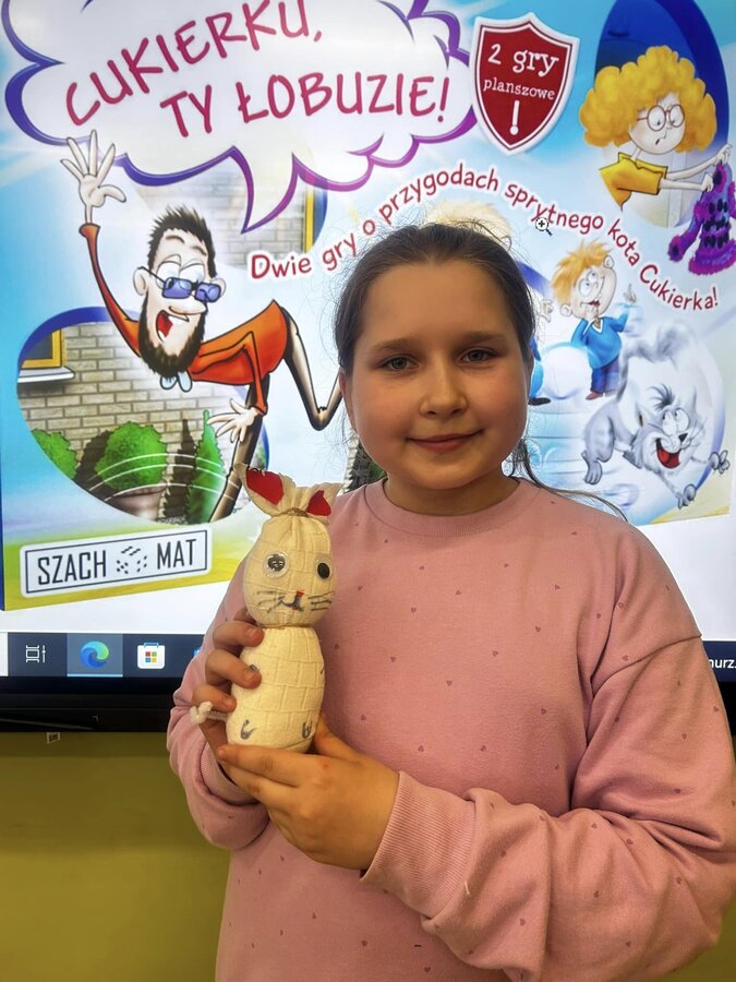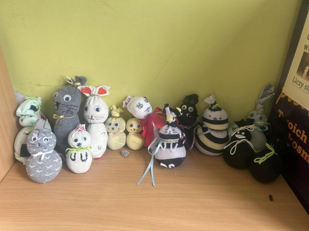 Oprócz cyklicznego już pudełka lektur, uczniowie wykonali także piękne pluszowe kotki.
