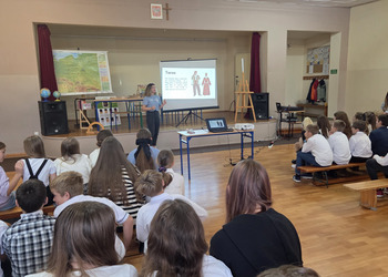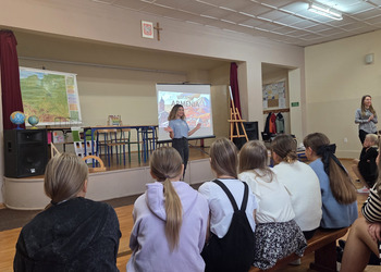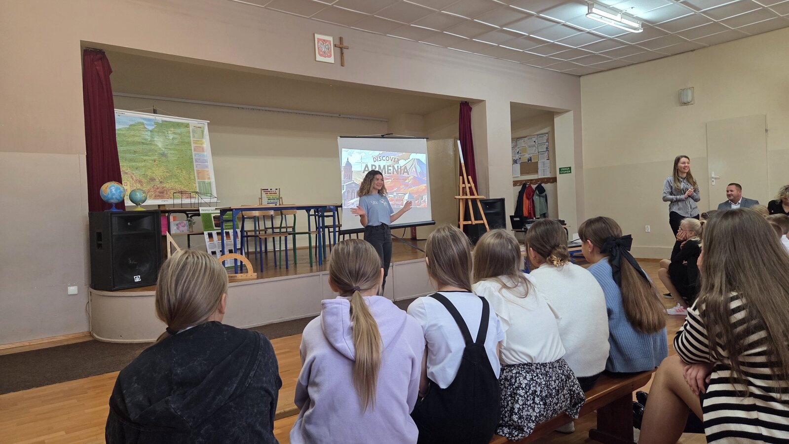 Z tej okazji klasy IV-VIII gościły wyjątkowe wolontariuszki - Sarę z Armenii oraz Yeganę z Azerbejdżanu. Nasze uczennice i uczniowie mieli niecodzienną okazję posłuchać opowieści o kulturze, tradycjach i życiu w tych krajach w języku angielskim. Spotkanie było nie tylko ciekawe, ale również poszerzyło horyzonty i pozwoliło na chwilę przenieść się w odległe zakątki świata.