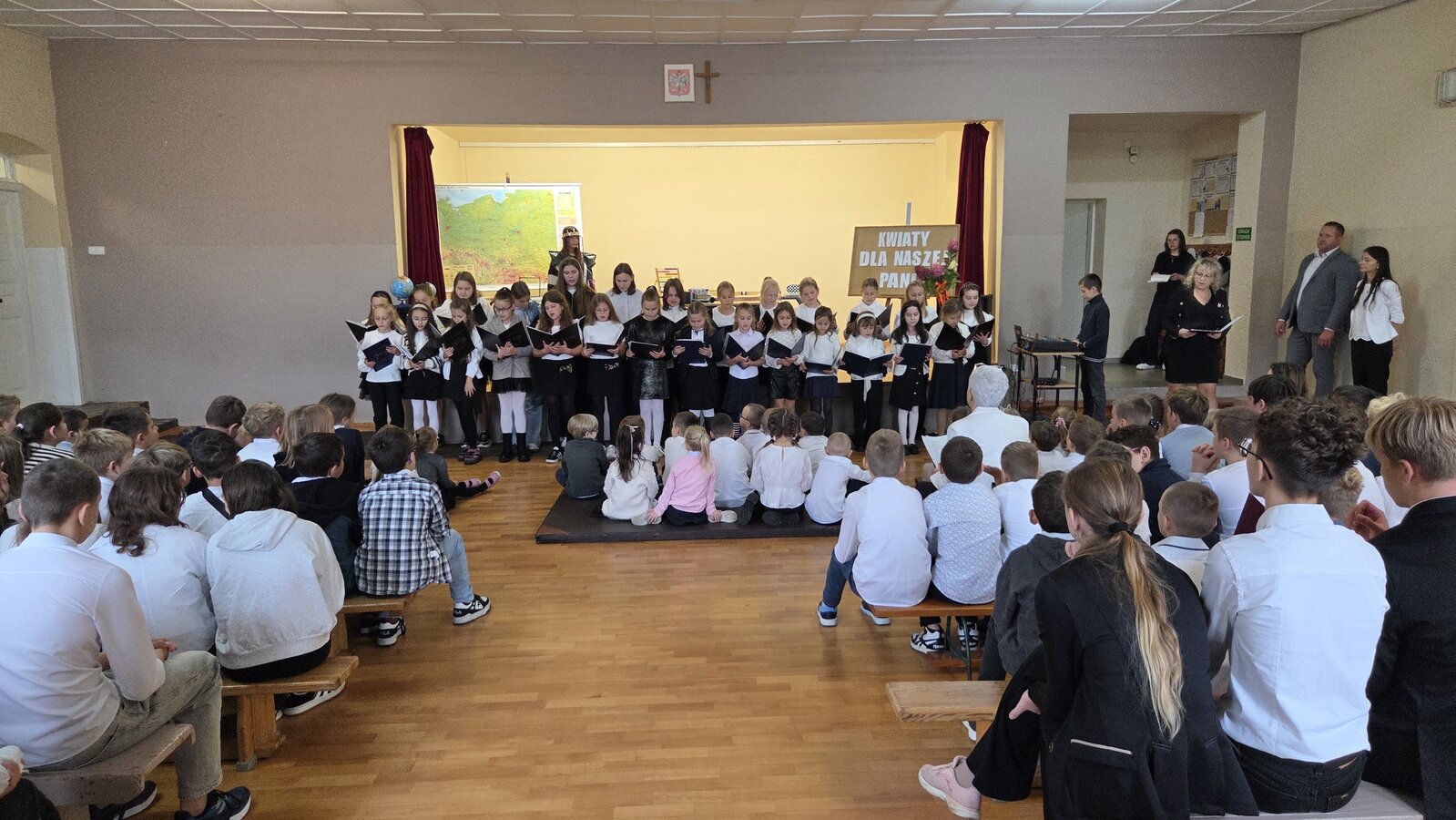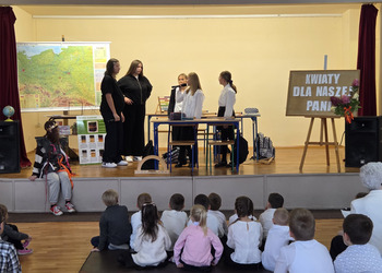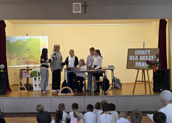 Następnie szkolne kółko teatralne zaprezentowało scenkę pt.„Trafiła kosa na…”, która spotkała się z entuzjastycznym przyjęciem. Uroczystość uświetnił również występ chóru szkolnego.
