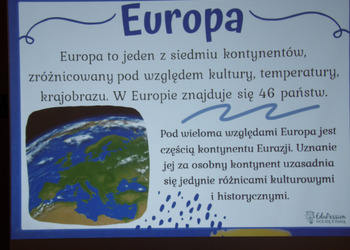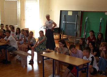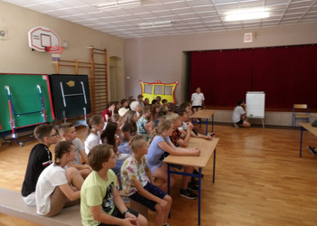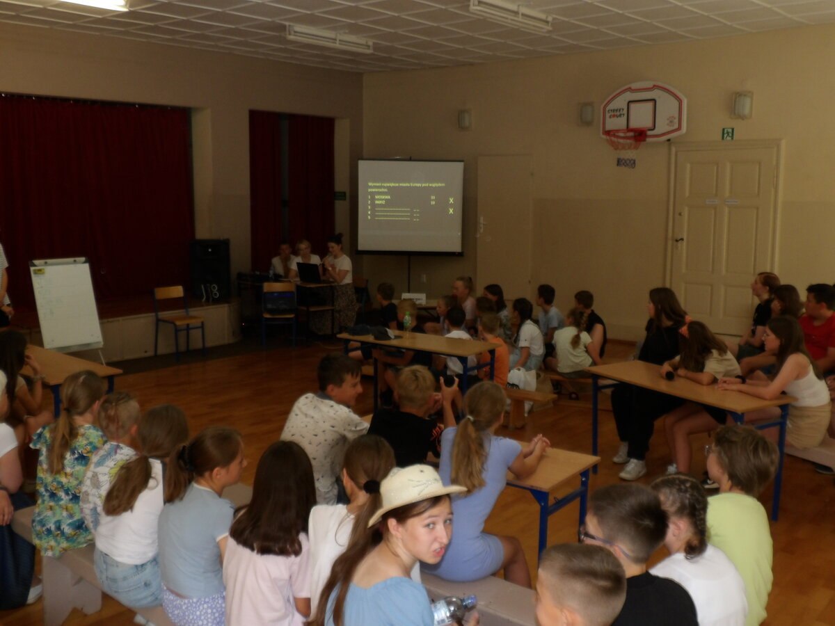 Dzień przed zakończeniem roku szkolnego obchodziliśmy Dzień Europy. Z tej okazji uczniowie klasy IV, V i VI przygotowali przedstawienie w języku angielskim. Był to "Puss in Boots" czyli angielska wersja znanego wszystkim Kota w Butach. Następnym punktem programu był teleturniej o Europie, który przybrał formę popularnej Familiady. Na zakończenie, w ramach konkursu SUPERKLASA odbyła się gra terenowa, w której zwyciężyła klasa VI.